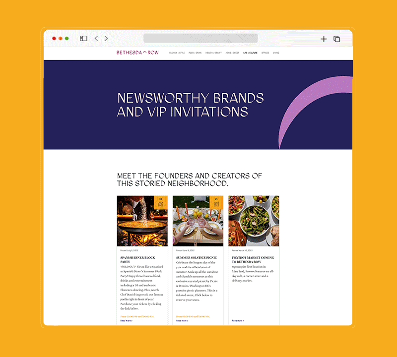 Highly curated and targeted events established to encourage community connection and unique transactional behaviors.